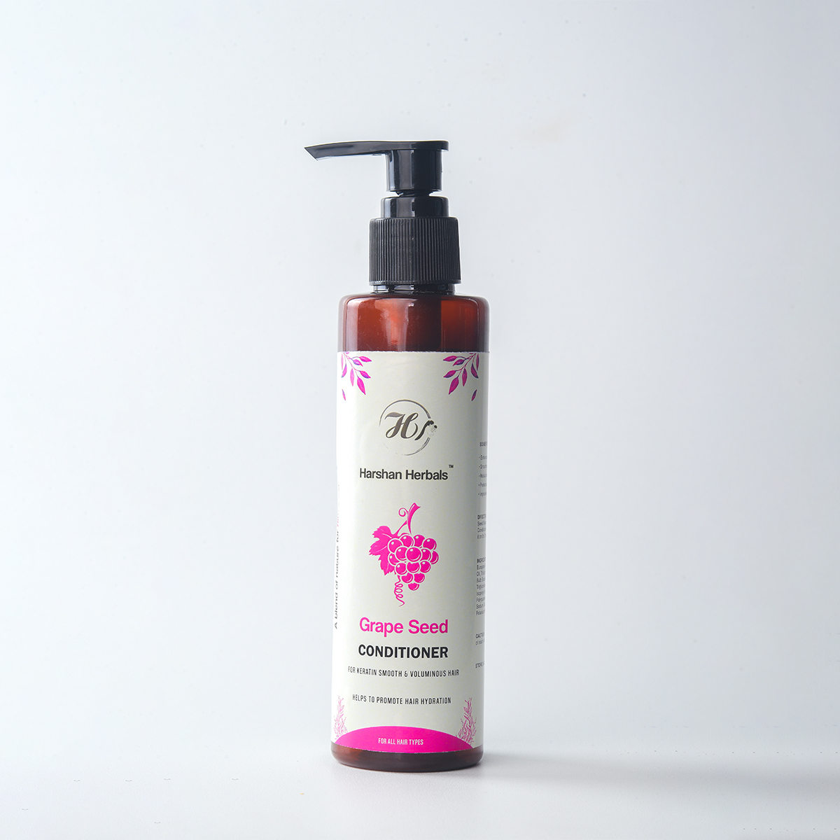 The ultimate indulgence for your hair. Infused with a luxurious blend of grapeseed extract and Olea Europaea (Olive) Fruit Oil, this conditioner deeply nourishes and revitalizes, leaving your hair soft, smooth, and full of life.Experience the enriching benefits of Prunus Amygdalus Dulcis (Sweet Almond) Oil and Triticum Vulgare (Wheat Germ) Oil, which provide intense hydration and fortify each strand from root to tip. Enhanced with Allium Cepa (Onion) Bulb Extract, it helps to strengthen and protect your hair, while Caprylic Triglyceride ensures a lightweight, non-greasy finish.Transform your hair care routine with this all-natural conditioner, designed to enhance shine, manageability, and overall health. Revel in the silky smoothness and natural radiance with every application of Harshan Herbals Grapeseed Conditioner.